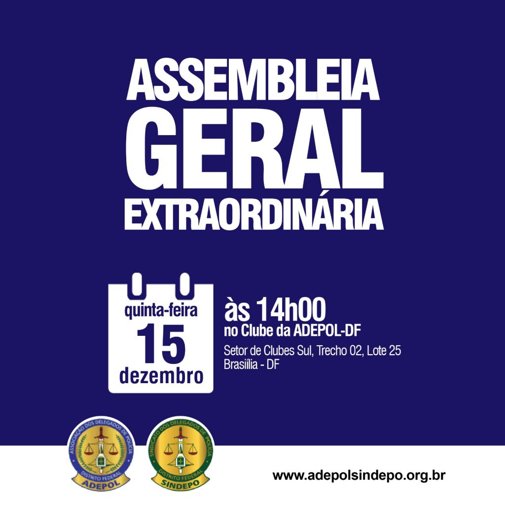 Considerando a reunião de hoje à tarde na CCJ da Câmara para apreciar a constitucionalidade da PEC da previdência; que na terça estaremos mobilizados para tratar dessa demanda; que na quarta, às 16h30, haverá reunião com o Ministério da Justiça para tratar do mesmo tema, quando teremos informações muito importantes para passar aos filiados; e que a AGE de terça tem como principal ponto a reforma da previdência; precisamos alterar a data da AGE para quinta-feira próxima, dia 15, às 14 horas, na Adepol.