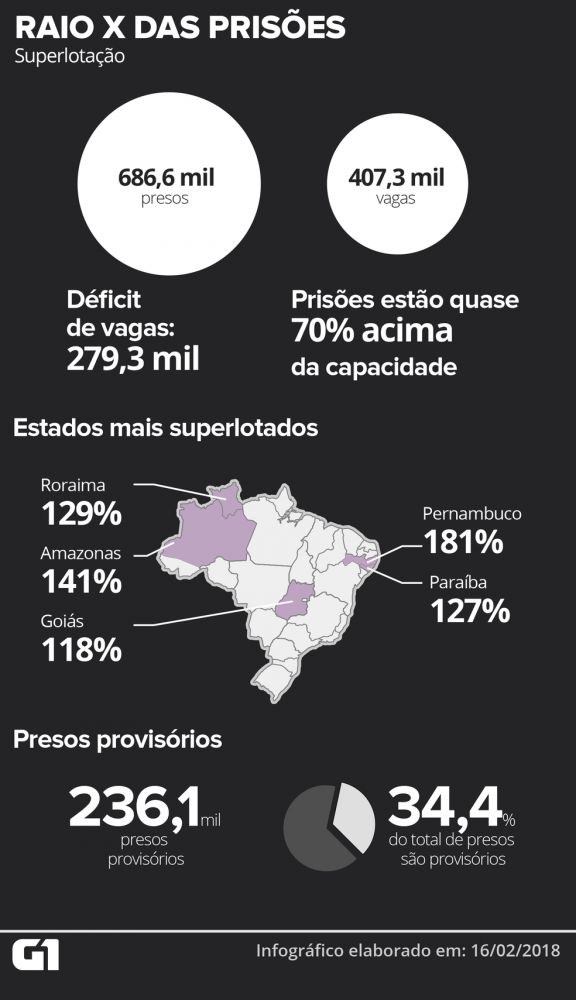 Desde a última reportagem do G1, publicada em janeiro de 2017, foram acrescidas ao sistema 7.952 vagas, número insuficiente para acomodar o total de presos, que ainda cresceu 2,8% em um ano, com 18.412 novos internos.