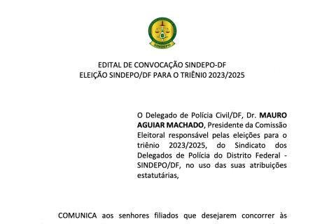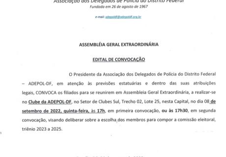 📌A Associação dos Delegados de Polícia do Distrito Federal (Adepol/DF) promove no próximo...
