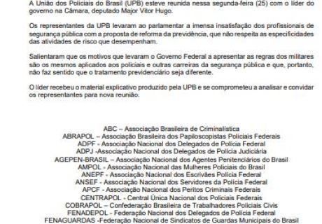 A União dos Policiais do Brasil (UPB) esteve reunida nessa segunda-feira (25) com o líder do...