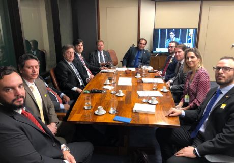 Reunião com os deputados Marcelo Freitas e João Campos para tratar de pautas dos Delegados de...