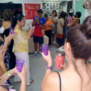 Foram feitos sorteios de brindes e as frequentadoras mais assíduas também receberam homenagens. Uma delas foi a delegada aposentada Gorete Reis. “Há um ano eu fui a primeira cliente! O presidente anunciou que inaugurou aí eu corri para cá”, contou, aos risos, depois de receber as flores.