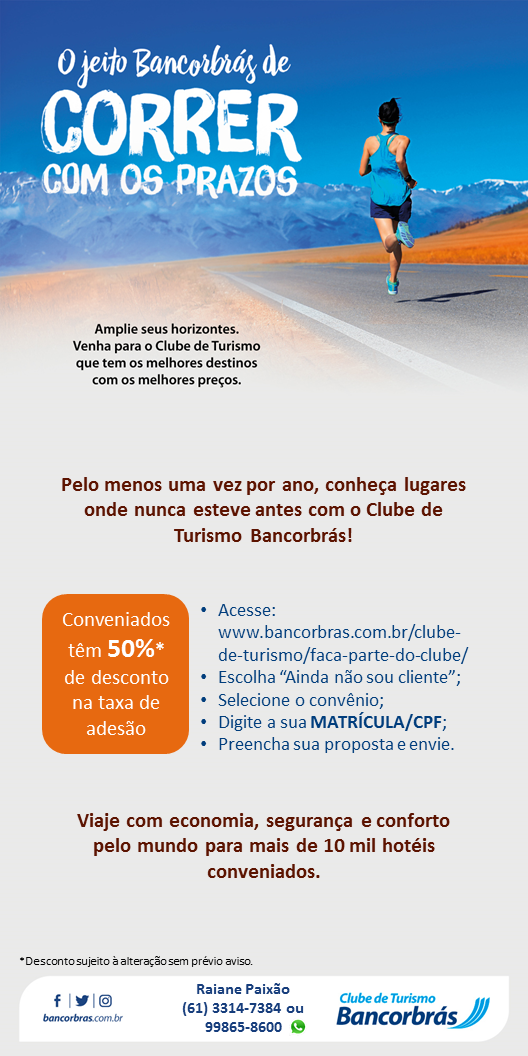 Faça parte do Clube de Turismo Bancorbrás! Desconto de 50% na taxa de adesão